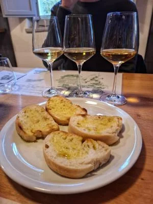 We participated in a tasting with 3 white wines and 3 red wines, all excellent, accompanied by bruschetta with their own production oil, delicious!